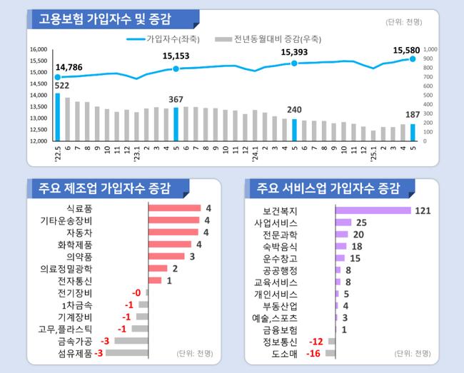 5월 고용보험 가입자 1,558만 명 돌파… 서비스업이 증가세 견인