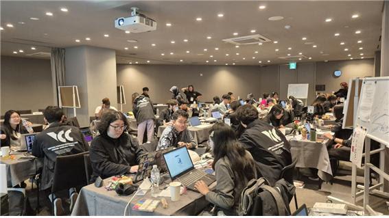 팀별로 아이디어를 토의하며 해커톤 프로젝트를 진행하는 모습 (사진=중앙대학교 제공)