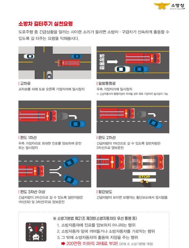 현행 도로교통법상 소방차, 구급차, 혈액공급차량 등은 긴급자동차로 분류되며, 일반 차량은 이들의 통행을 최우선으로 보장해야 한다. 그러나 실상은 출동 중 길을 양보하지 않거나, 앞에 끼어들고 통행을 막는 등의 위반 사례가 여전히 빈번하게 발생하고 있다.