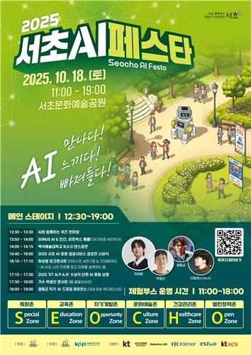 서울 서초구(구청장 전성수)는 `양재 AI 특구` 지정 1주년을 기념해 오는 18일 서초문화예술공원에서 누구나 인공지능(AI)을 만나고, 느끼고, 빠져들 수 있는 `2025 서초 AI 페스타`를 개최한다고 밝혔다.
