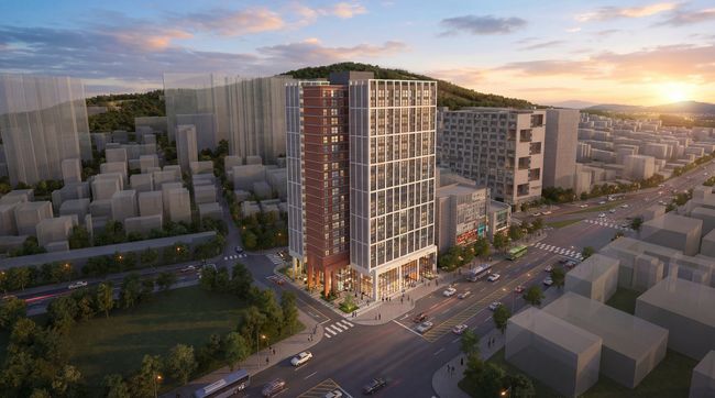 중랑구 묵동 먹골역 인근에는 지하 5층~지상 21층 규모의 복합시설이 들어서 공공임대 오피스텔 152실을 공급한다. 저층부에는 약 1,300㎡ 규모의 근린생활시설을 조성하고, 도로변 공개공지와 상업시설 배치를 통해 가로 활성화와 생활 편의성을 높인다. 이 사업은 2026년 착공해 2029년 준공을 목표로 추진된다.