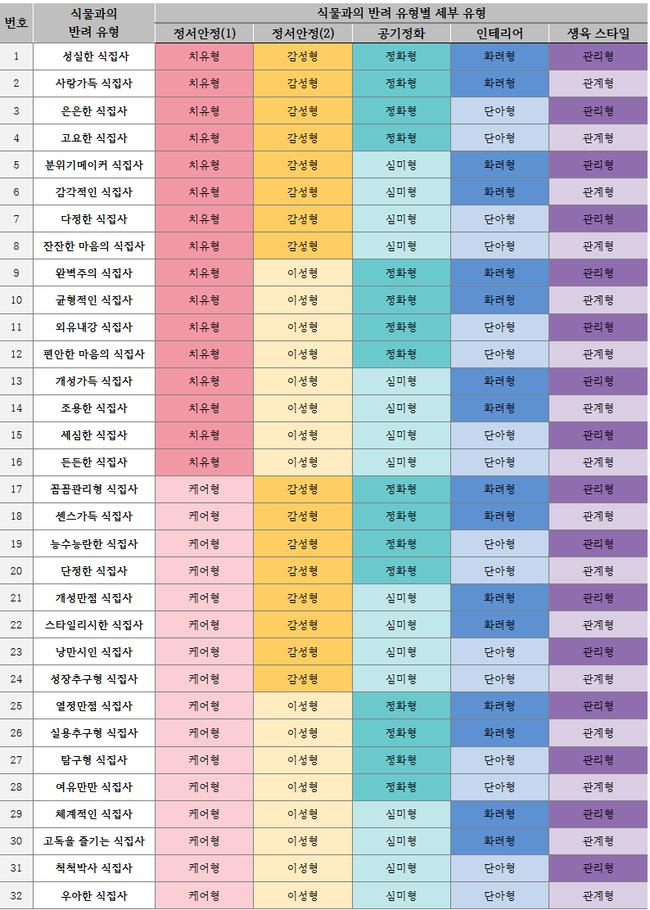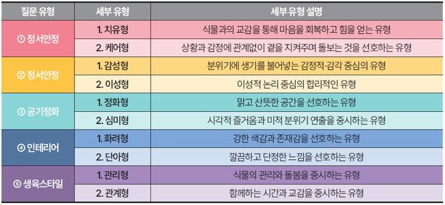 • 이용자 성향 32가지로 분류해 228종 식물 제안